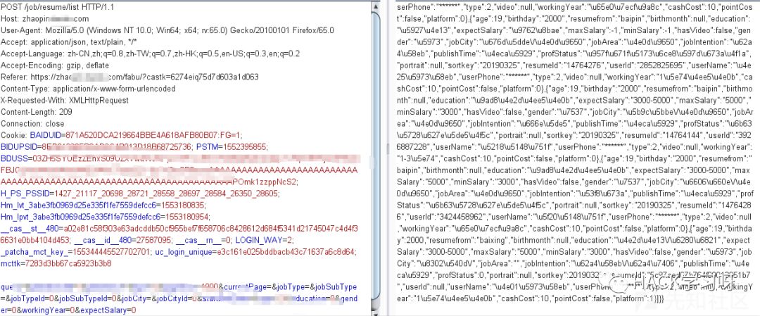 2)抓包放行,得到的返回包如下
