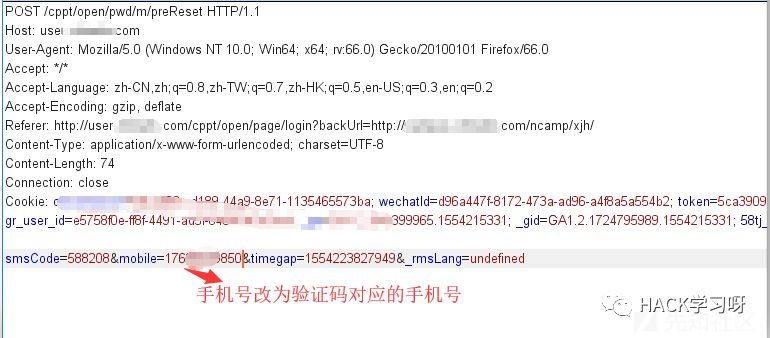 未对原绑定手机号、验证码、用户未统一验证,或验证码未绑定 只验证验证码正确,没判断用户id 或手机号,修改想改的id 正确手机验证码即可