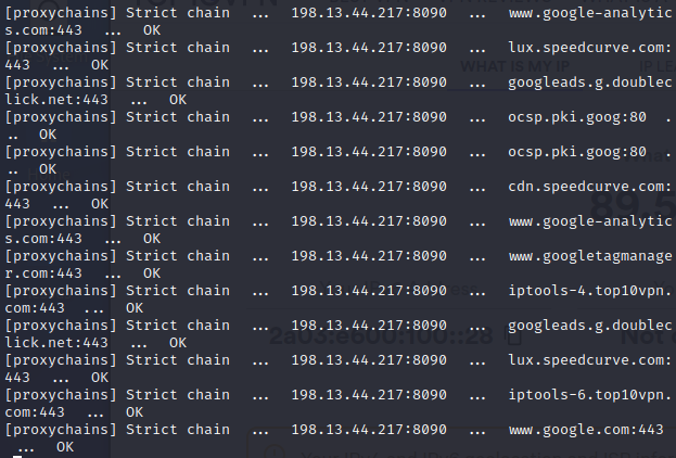 # 这样一来,当再用 proxychains4 去启动指定程序时就会自动从 tor 网络走