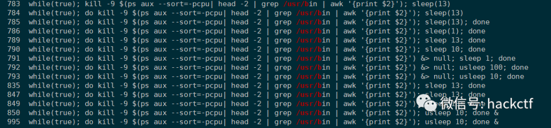 /usr/bin/ 没有直接关系,线索暂时中断。ps -ef 可以看到启动了一个进程 /usr/bin/随机字符串,发送kill -9之后立刻重新启动,启动之后这个程序会删除本身,以达到隐藏自己的目的。父进程pid是1,可以知道是systemd启动的恶意进程。pid是1我们可以推测程序利用了 systemd重启恶意程序。service的配置文件里面写了Restart=always这个重启策略。/etc/systemd/里面注册的 Restart=always的配置文件。找了半天实在眼花,也用了正常工作的CentOS的systemd服务和此服务器的做对比,区别挺大,没有找到明显异常,此路不通。:)systemctl list-unit-files|grep enabled