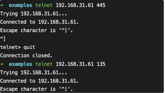 若遇到只开放135的情况,可以增加nooutput 参数,不进⾏输出