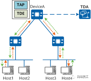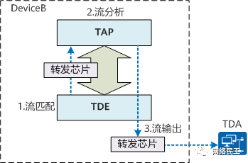 - TAP:由设备CPU内置芯片承担,对TDE上送的业务流进行处理和分析,并将分析结果输出至TDA。