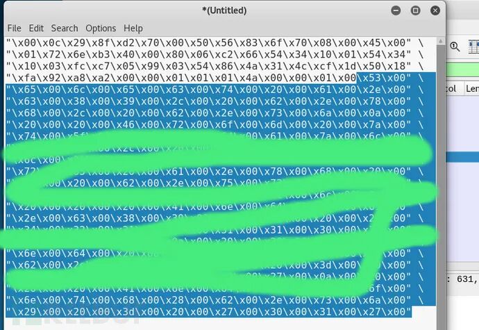 1、启动wireshark并设定好捕获参数。图中左上第一个就是捕获按钮,第二个是停止捕获。3、在wireshark捕获的数据中,我们要寻找一个特定的数据包,该数据包中原始的sql语句越长越好,足够的长度才能为我们篡改sql语句,提供足够多的字符空间。tds.query可以过滤出所有的数据库相关包,我们可以查看sql语句,找到长度足够的sql语句。上图中,列出了很多sql语句包,384是最长的,所以,它就是我们要找的特定数据包5、从特定数据包中抽取其原生的sql语句,制作二进制格式的字符串,这个步骤难度最大,是成功与否的关键。上图中间区域,tabular data stream--tds query packet下面,可以看到完整的sql语句,它的确够长。鼠标放到下面蓝色区域,右键选择 as Escaped String,再粘贴到编辑器中,变成如下图所示,需要手工处理一下,对照上副图,下图中删除白底数据,保留蓝底数据,然后删除头尾的引号、斜杠等,使它变成一个标准的二进制格式的字符串,它就是我们抽取的原始sql字符串,然后,复制到后面sql_replace.js截图的第7行。![]()