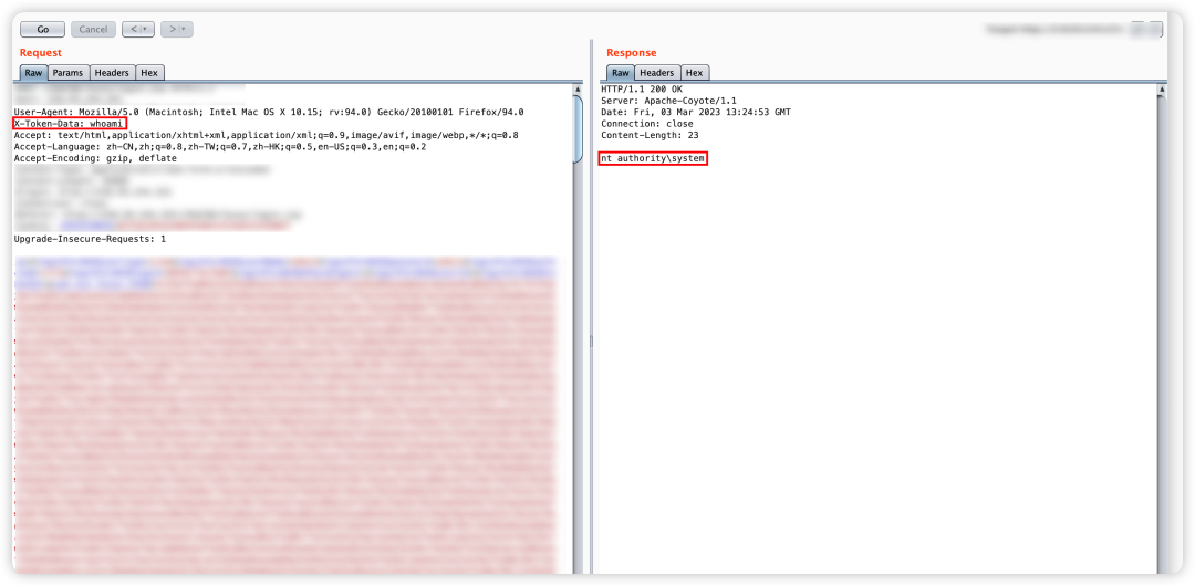 因此,为了解决实战化的可用性问题,在后续更新的漏洞利用 PoC 均采用了回显的技术,将命令执行的结果返回 response 中;而 EXP 中则是直接打入内存马,节省了中间的很多过程。