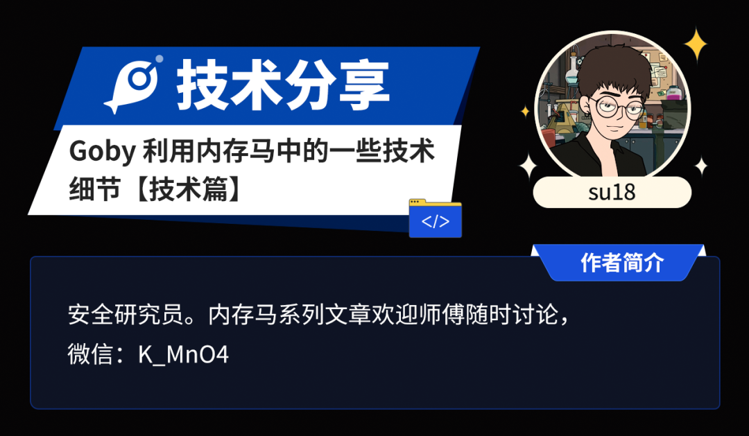 本文主要分为三个部分:“前置漏洞的利用”、“内存马的生成”以及“内存马的使用”,给大家分享一些 Goby 中相关的技术点和其中的细节或坑,欢迎大家一起讨论。