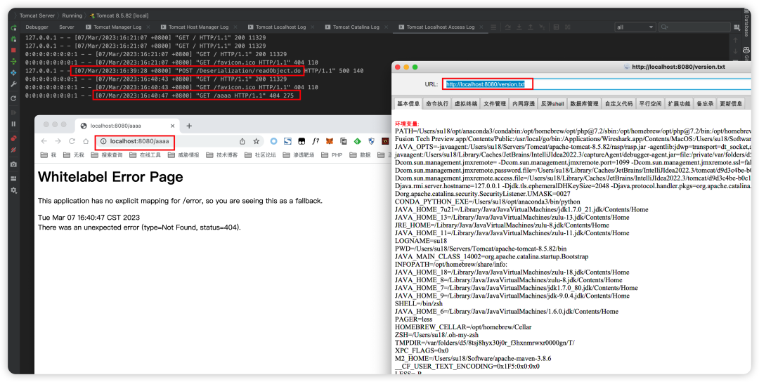 这里简单演示一下相关的技术的一些使用效果,以下视频演示了使用 Goby 通过反序列化一键注入 Filter 型内存马,并通过自定义 URLClassLoader 携带虚假信息,来躲避安全人员的排查,并且通过清除日志来达到无痕的目的。
