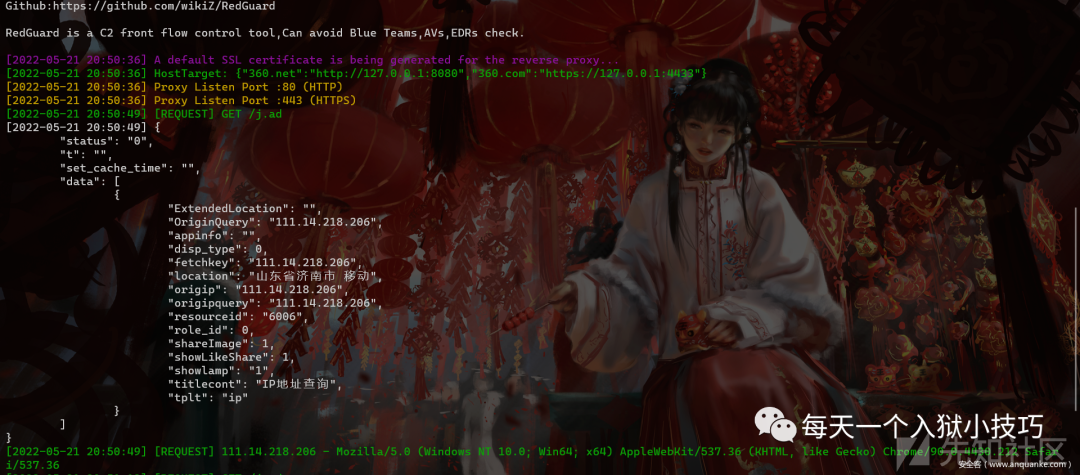 关于地域限制的上线,在目前的攻防演练可能比较实用,基本上省市级的护网限制的目标都是在指定区域中,而对于其他地域请求的流量自然可以忽略不计,而RedGuard这一功能不仅仅可以限制单一地域也可以根据省、市限制多个上线地域,而对其他地域请求的流量进行拦截。