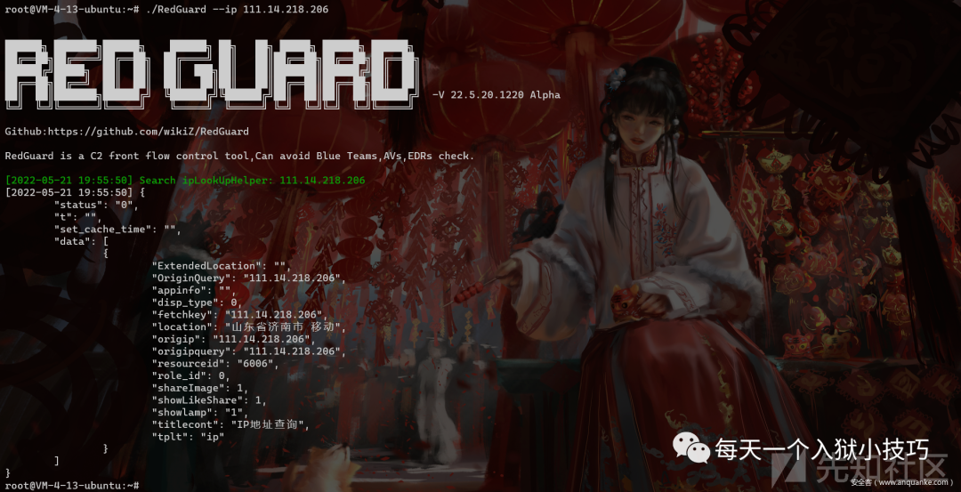 ./RedGuard --ip 111.14.218.206 --location shandong # 使用海外API查询归属地