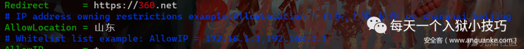 除了RedGuard内置的安全厂商IP的黑名单,我们还可以依据白名单的方式进行限制,其实我也是建议在web打点的时候,我们可以根据白名单限制上线的IP的地址,以,分割多个IP地址的方式。