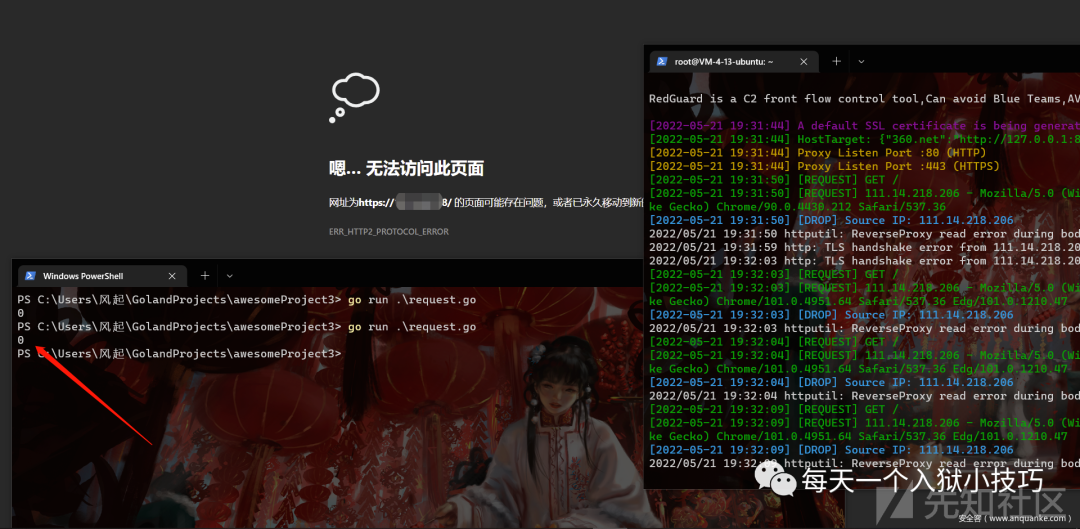 RedGuard,是一款C2设施前置流量控制技术的衍生作品,有着更加轻量的设计、高效的流量交互、以及使用go语言开发具有的可靠兼容性。它所解决的核心问题也是在面对日益复杂的红蓝攻防演练行动中,给予攻击队更加优秀的C2基础设施隐匿方案,赋予C2设施的交互流量以流量控制功能,拦截那些“恶意”的分析流量,更好的完成整个攻击任务。