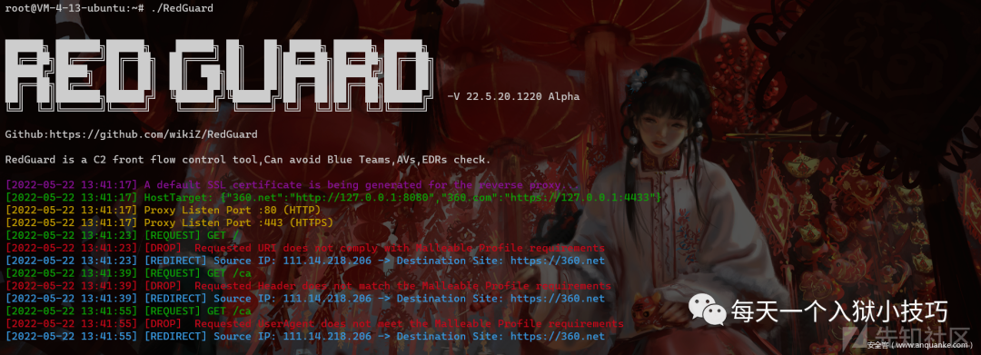 RedGuard是一个C2设施前置流量控制工具,可以避免Blue Team,AVS,EDR,Cyberspace Search Engine的检查。