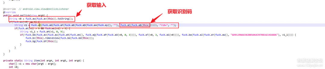 正如原帖子中提到的。这个锁机机软件对smali代码进行了混淆。这里的混淆实际上比较简单,做的就是在调用类的方法时,将其转换为一个函数调用的过程。几乎所有java中的方法都进行了这样的转换。其主要表现形式如下方的代码,并且对于java中的变量名使用了一些unicode字符作为变量名。这些unicode 字符不仅长得相似还难以区分。如下方这个代码中,你调用bb这个函数,实际上就是在执行一个判断两个字符串是否相等的方法而已。当这样的混淆很多,并且结合unicode变量名的时候。代码看起来就很混乱。