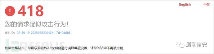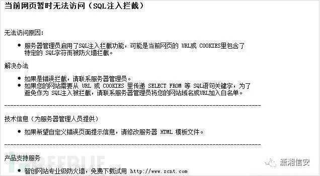 收集WAF拦截页面较为麻烦,部分图片引用自潇湘信安微信公众号中3had0w师傅的文章《30几款常见WAF的拦截页整理》,在此感谢下师傅~