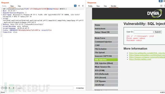 可以利用payload = 1'+/*!33441and*/+1=1%23绕过安全狗进行检测: