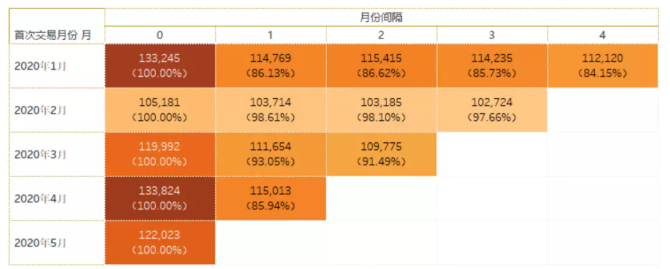 - 第30日留存率:(第一天新增用户中,第30天还有登录的用户数)/第一天新增总用户数。