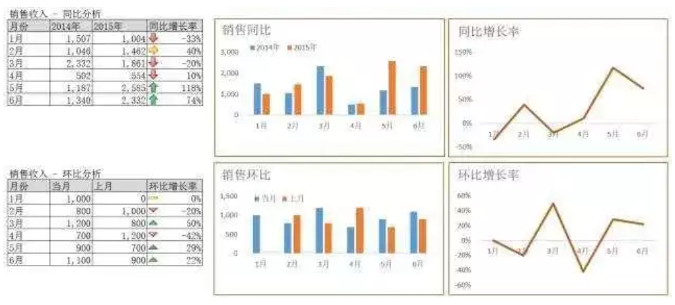 - 时间对比:如同比、环比、月销售情况等,很多地方都会用到时间对比。