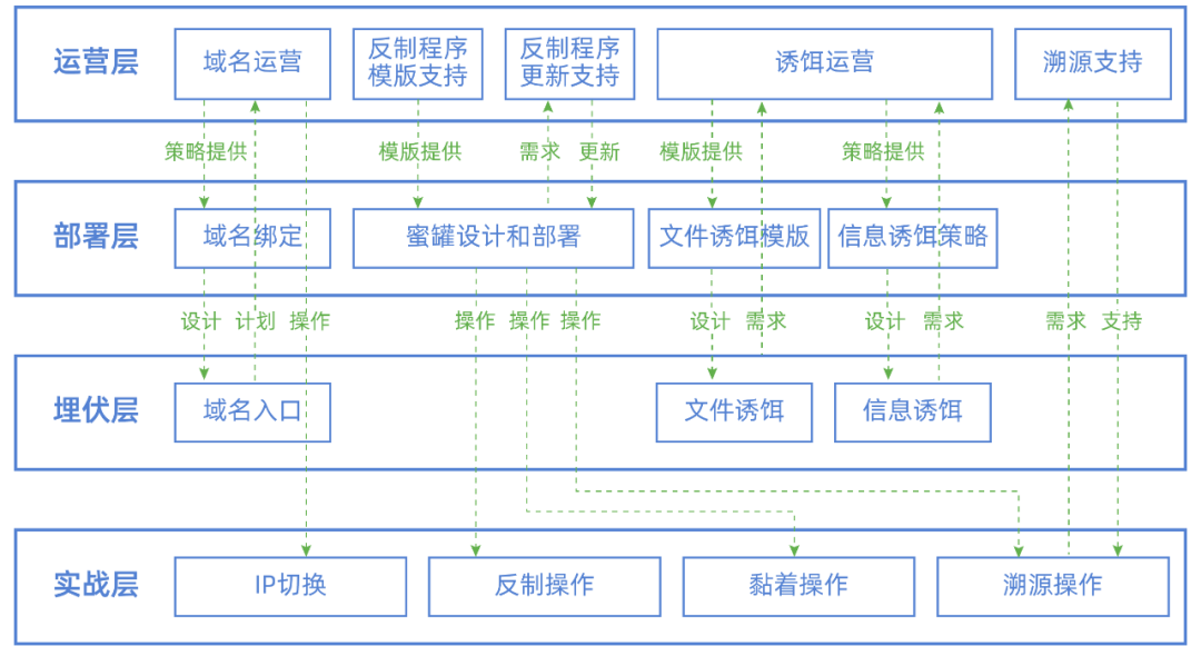 在大型攻防演练场景中,通过伪装欺骗系统“主动”部署诱饵,诱敌深入,采集信息达到追踪溯源,最终反制,是可以减少失分获得加分的重要方式。