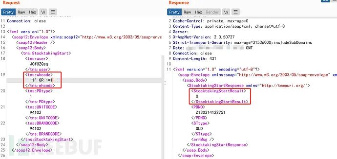 这颗西瓜甜,但当时渗透测试进展到这个地步时,已经花费了一个星期的时间,所以笔者并不是很满意。所以就再对剩下的接口一一测式。其中一个接口是用来盘点商品信息的: