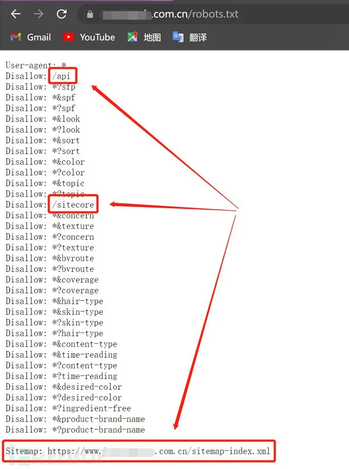 确定CMS为Sitecore,访问 /api 是403,访问Sitemap:
