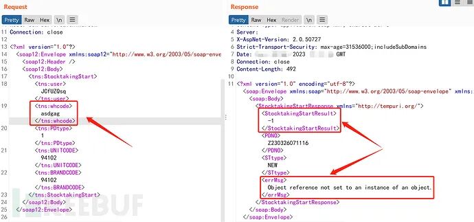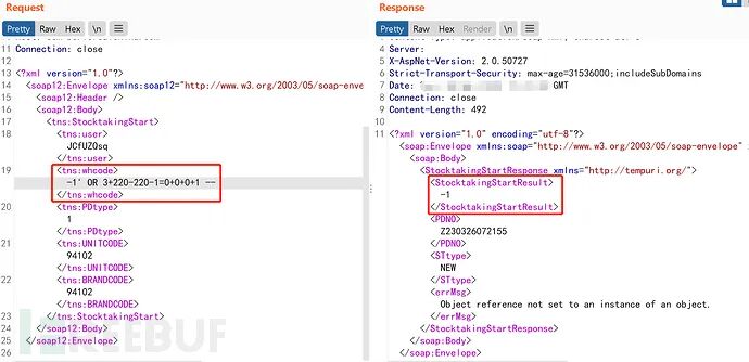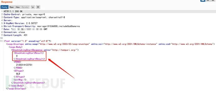 而随便输入一个不存在的数据,返回包中StocktakingStartResult 参数返回值为-1,由此可知接口调用成功返回值为0,失败为-1: