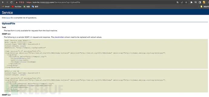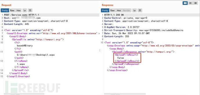 import java.io.*;import java.net.*;public class FileUploader {public static void main(String[] args) throws Exception {String url = "http://target.com/Service.asmx";URL obj = new URL(url);HttpURLConnection con = (HttpURLConnection) obj.openConnection();// 设置请求方法和请求头con.setRequestMethod("POST");con.setRequestProperty("Content-Type", "text/xml; charset=utf-8");con.setRequestProperty("SOAPAction", "http://tempuri.org/UploadFile");// 构造SOAP消息体String fs = ""; // TODO: 将文件内容转换为base64编码字符串String path = "test.aspx";String fileName = "test.aspx";String soapXml ="<soap:Envelope xmlns:soap='http://schemas.xmlsoap.org/soap/envelope/' " +"xmlns:xsi='http://www.w3.org/2001/XMLSchema-instance' " +"xmlns:xsd='http://www.w3.org/2001/XMLSchema'>" +"<soap:Body>" +"<UploadFile xmlns='http://tempuri.org/'>" +"<fs>" + fs + "</fs>" +"<path>" + path + "</path>" +"<fileName>" + fileName + "</fileName>" +"</UploadFile>" +"</soap:Body>" +"</soap:Envelope>";// 发送SOAP消息体con.setDoOutput(true);OutputStream os = con.getOutputStream();os.write(soapXml.getBytes());// 读取响应int responseCode = con.getResponseCode();System.out.println("Response Code : " + responseCode);BufferedReader in = new BufferedReader(new InputStreamReader(con.getInputStream()));String inputLine;StringBuffer response = new StringBuffer();while ((inputLine = in.readLine()) != null) {response.append(inputLine);}in.close();// 打印响应System.out.println(response.toString());}}