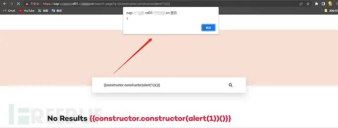 页面输出了乘法运算的结果,进一步验证确定存在Vue模板注入漏洞,成功弹窗: