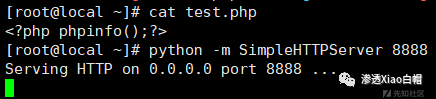 首先在vps上创建一个test.php,并用python开放一个端口
