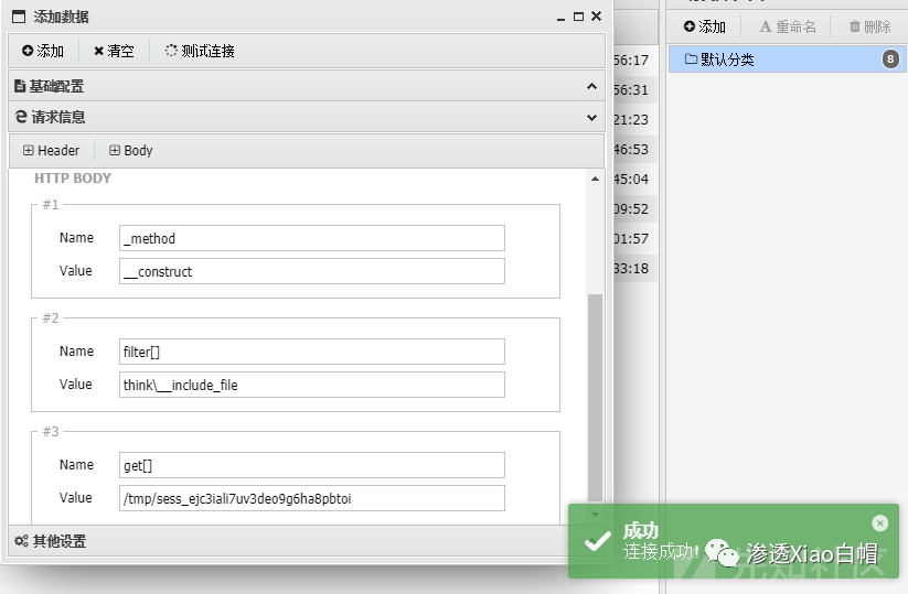 首先通过设置session会话并传入一句话木马