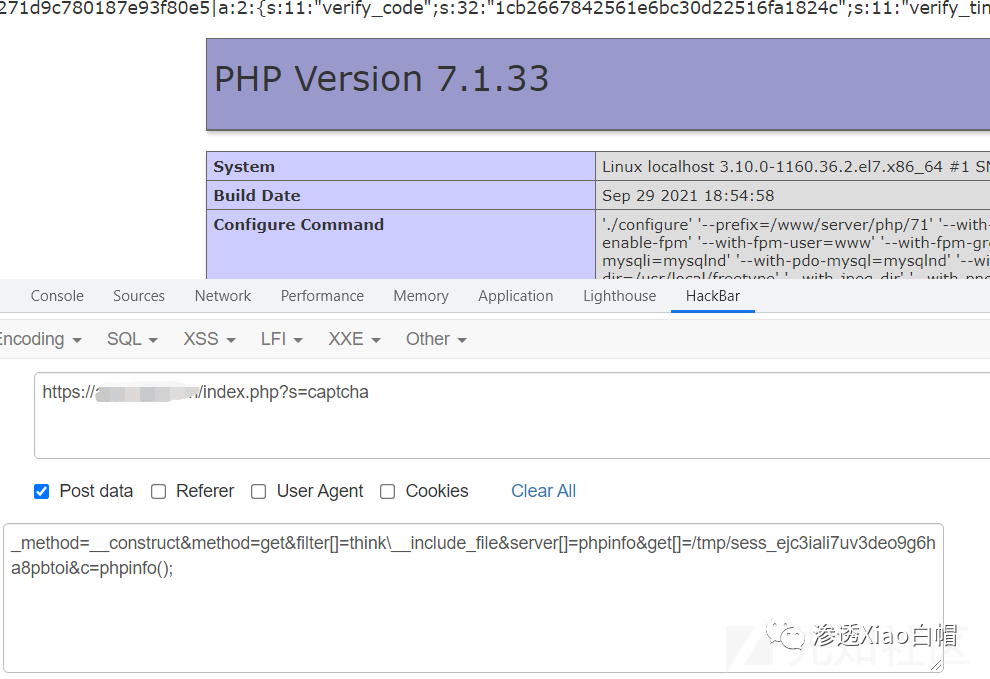 然后直接利用文件包含去包含session文件,tp5的session文件一般都是在/tmp下面,文件名为sess_sessionid(这个sessionod在Cookie里面)