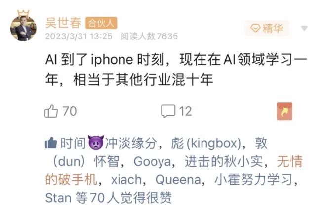 我也是在沿着初心一步步建设这个AI社区:体系化的课程包括小白、入门、中级、高级、投资人的资源,包括吴世春大佬和不少顶级投资人、带领大家学习和做应用,现在社群已经孵化出好几个创业项目。