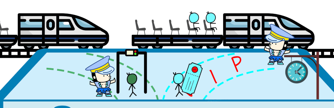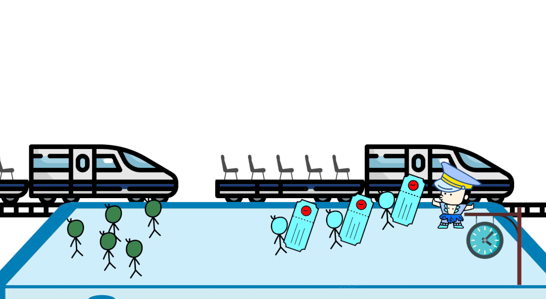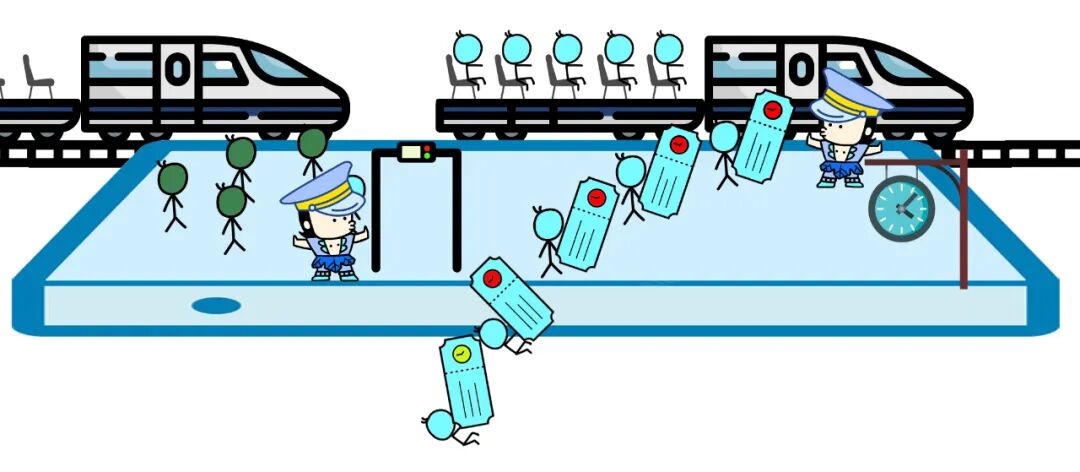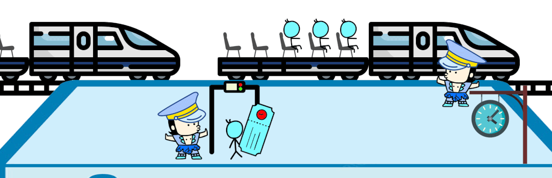 在“尽力而为”的绿皮车世界里,旅客的票有点像地铁票,你只要持票进站,地铁是不管你上哪趟车的,高峰期这趟上不去,就等下趟。但是在“确定性”的高铁世界里,旅客的票必须精确到车次和座位。让你这趟车走,就保证这趟车上有你的地方。所以,进站之后,列车员会给旅客一张带有“时间戳”的车票。列车开出去之后,就用到了神奇的第四大魔法——“换乘”。你可要看仔细喽!注意,旅客手里这张“票”是负责北京到上海全程的,但中途要换车。而且一直用这同一张票。如果我们站在北京到上海之间的某站,比如“郑州”,你会看到一个奇妙的场景:由于火车以光速运行(信号传输用的是光纤),一趟一趟速度非常快,所以郑州的站台上经常会混合着几趟车下来的乘客。但是别担心,这里不会发生混乱。因为检票员只要看一眼旅客们车票上的最初出发时间,就能按照先后顺序把他们排到新的列车上。