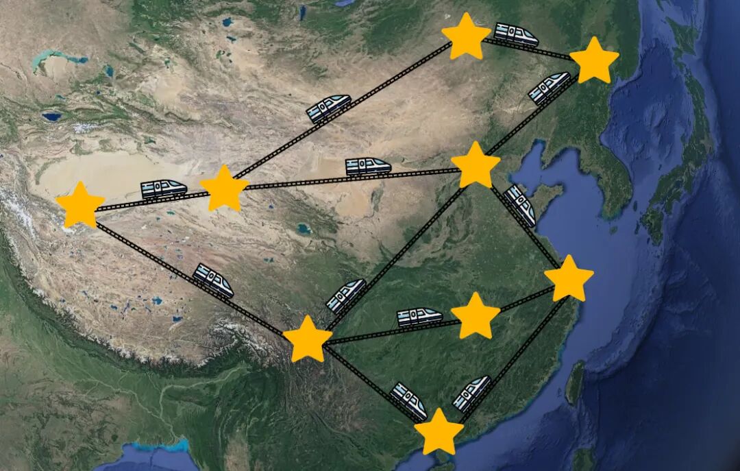既然要保证旅客在规定时间到达上海,那首先就得保证各个站台的表是一样的啊!程作品提醒我,这里各个“站台”的表不需要调到绝对一致,只需要相对一致——所有的表在同一时刻跳秒——就够了。旅客要从北京到上海,但条条大路通上海,究竟选哪条路最快呢?这个时候,需要派出一个先遣队,把所有路段都跑一次,然后把各个路段的延时、抖动等指标都回传到北京的“调度中心”,调度中心就能选择一条最合适这位旅客的通路。一个是“路途短”,从北京到上海,当然不能绕乌鲁木齐一圈儿,要选择一条近路。一个是“有空座”,春节抢过票的浅友肯定深有体会,路途近不一定能抢到票啊。为了春节能准时到家,有时候你还真得选一条稍微绕远但是有座的线路。
