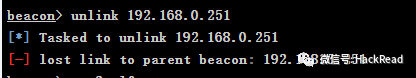 这就是派生的 SMB Beacon,当前没有连接,可以在主 Beacon 上用 link host 连接它,或者unlink host 断开