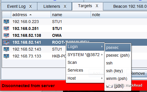 前面横向探测已经获取到内网内的其他 Targets 以及读取到的凭证信息,尝试使用 psexec