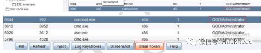 除了直接使用获取到的 hash 值,也可以直接窃取 GOD\Administrator 的 token 来登录其