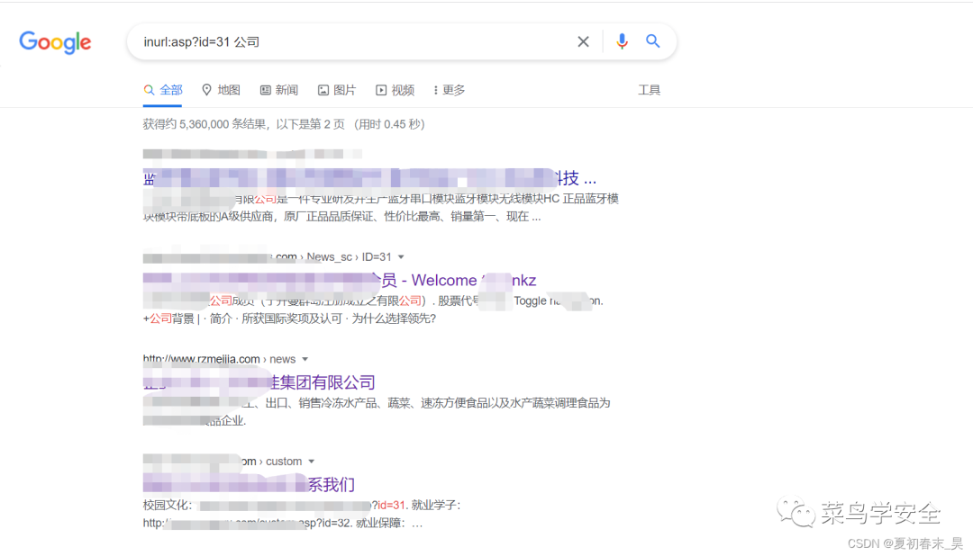 1、打开google hack语法搜索inurl:asp?id=31 公司