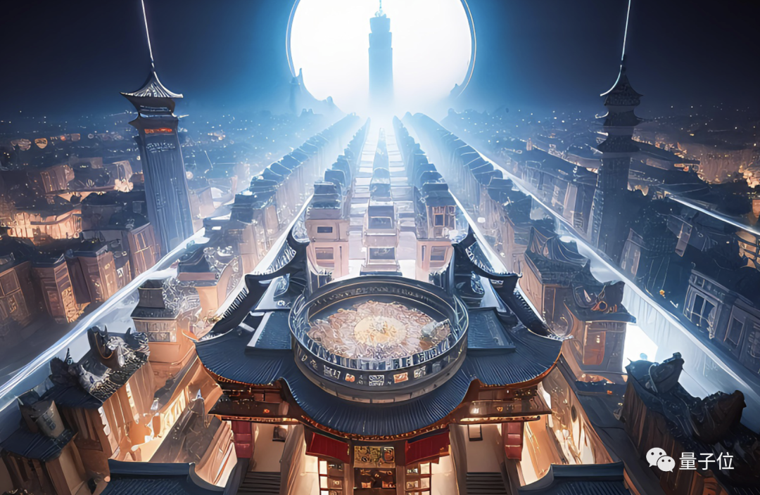 明亮的场面,鸟瞰图,中国古代城市,水晶,魔幻,幻想,华丽的光作用,透明度,镜面反射,华丽的光,错综复杂的细节,精细的纹理,超现实,单反摄影,广角镜头,照片,现实,锋利的焦点,超锋利。