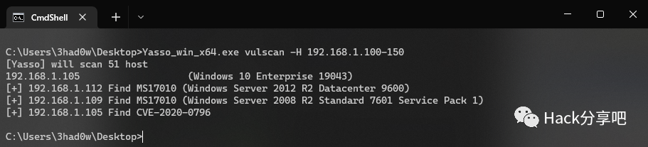 Available Commands: all Use all scanner module (.attention) Some service not support proxy,You might lose it [*] completion Generate the autocompletion script for the specified shell crack crack module and extend tool help Help about any command ping Use ping to scanner alive host (not support proxy) ps The port scanning module will find vulnerable ports (not support proxy) version Print Yasso's version in screen vulscan Host Vulnerability Scanning (support proxy) webscan Use dismap module discover Web fingerprints (support proxy) winscan netbios、smb、oxid scan