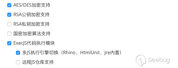 目前越来越多的网站系统在登录接口、数据请求接口中加入各式各样的加密算法,甚至有些网站在每次请求前都动态请求加密密钥等措施,对接口渗透工作造成较大障碍。依赖于BurpSuite中的那些编码方式、Hash算法已经远远不够,通过BurpCrypto内置的RSA、AES、DES模块可应对较为简单的前端加密接口,较为复杂的加密算法,可使用ExecJS模块直接手动编写处理代码。同时为了降低ExecJS模块的上手难度,未来将推出远程JS模块仓库,支持远程加载已经测试通过的JS功能代码,方便直接调用。