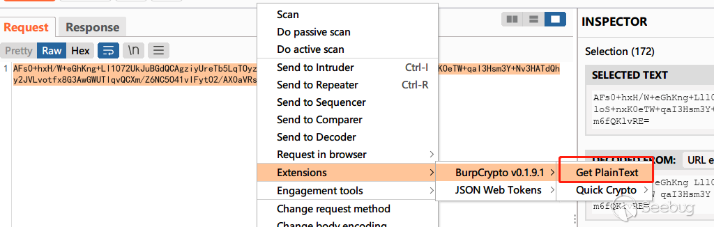 BurpCrypto几乎可以在BurpSuite的任何位置进行调用,调用方法也较为简单,以下动图为示例: