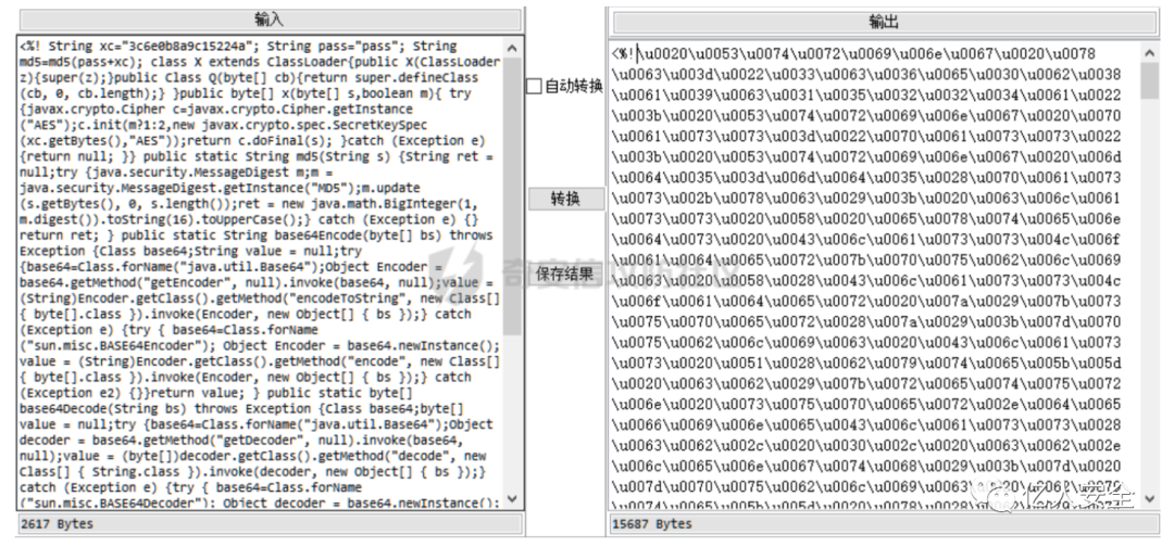 1、首先生成一个哥斯拉的jsp木马,然后进行unicode编码