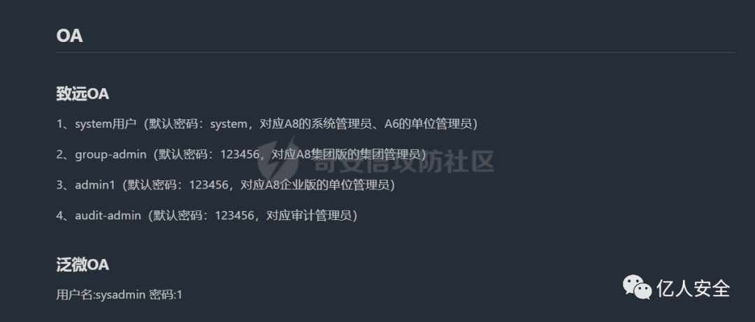 对于一些应用广泛的系统,可以通过google语法搜索其默认密码