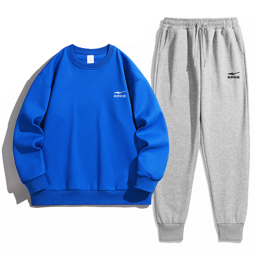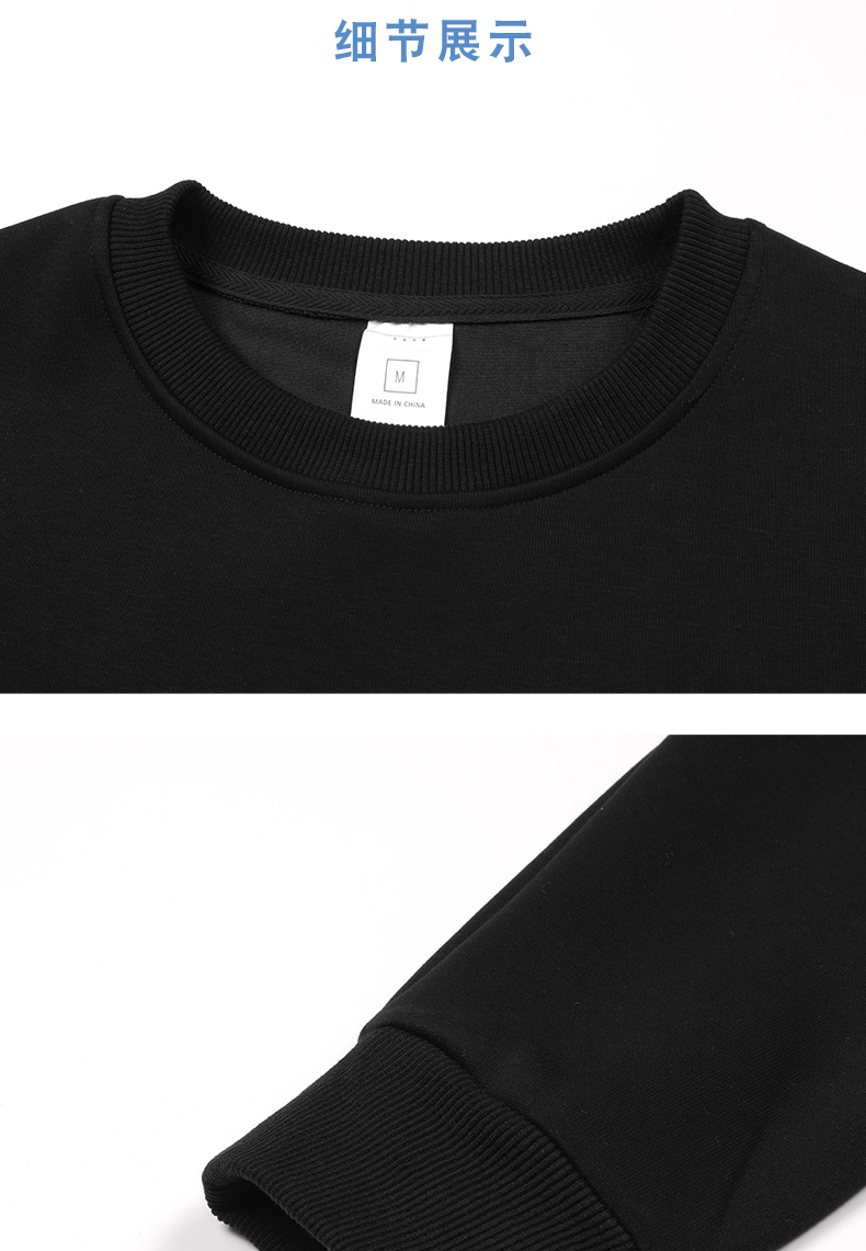 卫衣套装领口为圆领款设计,既可以单独穿着,也可以内搭叠穿衬衫,满足不同的穿搭需求。