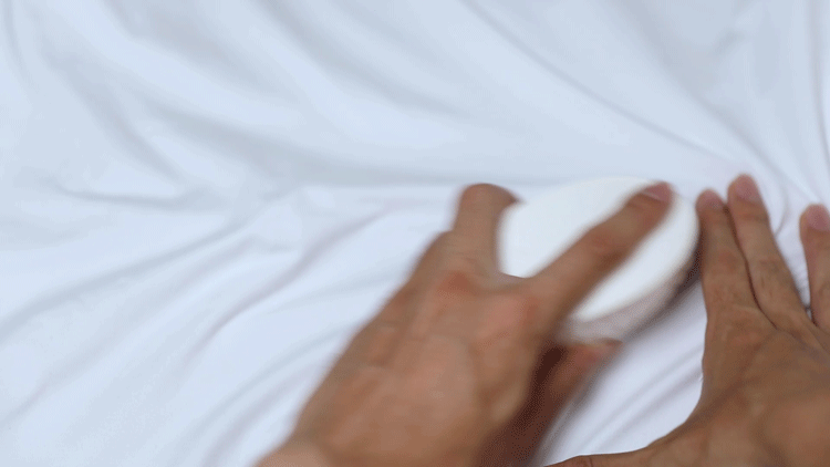将水滴滴在面料上,水滴快速向面料扩散,很快就被吸收掉了,就算走路出汗也不怕黏在身上。