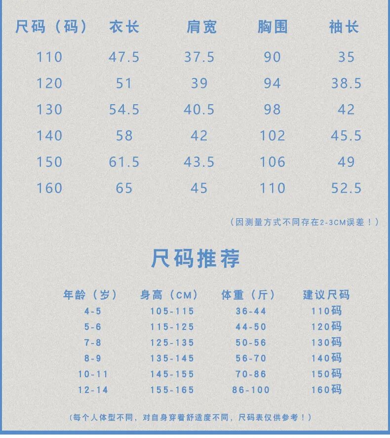 我们还为有宝宝的家庭特别准备了亲子款,儿童款的尺码可以参考下方尺码表选择,110-160码,100斤内可穿。